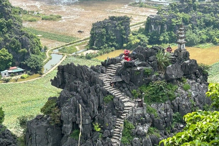 Active Adventure: Cycle through peaceful villages and lush rice fields on a high-quality sports bike, then hike up Mua Cave for the most stunning panoramic views of Ninh Binh.