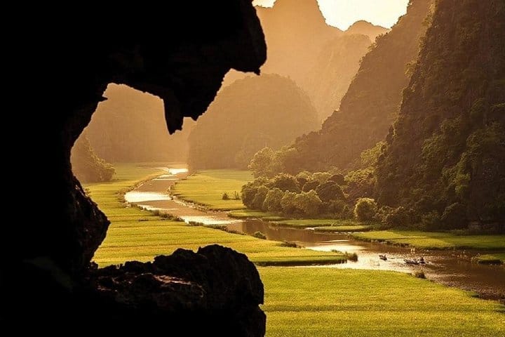 The "Halong Bay on Land": Relax on a traditional sampan boat as you glide through the breathtaking limestone peaks and three iconic caves of Tam Coc.